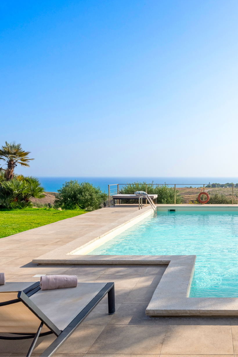 Enjoy an unforgettable feeling of relaxation in our sensory garden with pool area overlooking the sea and dedicated areas.
